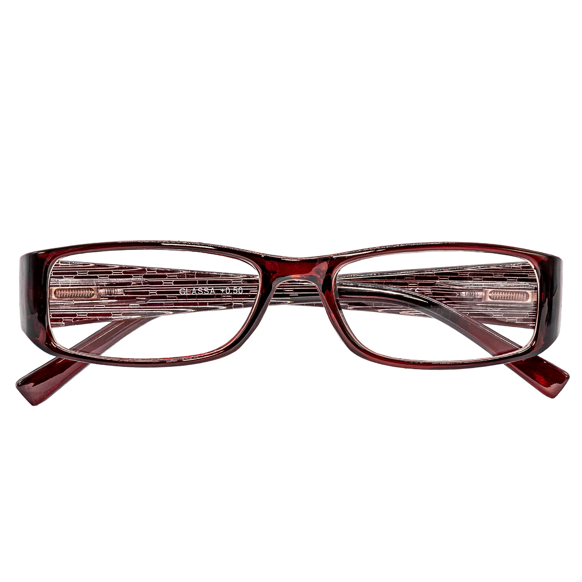 Tyto brýlové obroučky G138 červené jsou dostupné jak v plusových hodnotách (vhodné pro čtení) tak v minusových hodnotách (brýle do dálky). Skok po 0,50 dioptrii např. (-1,5 , -1,0 , … 0,50 , 1,00 , 1,50 , …..). Plastové obroučky s flexi stranicemi. Čočky jsou vyrobeny u plastu.