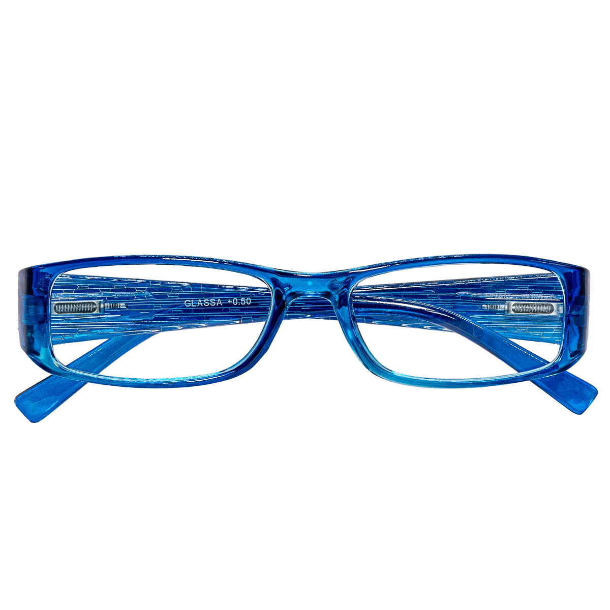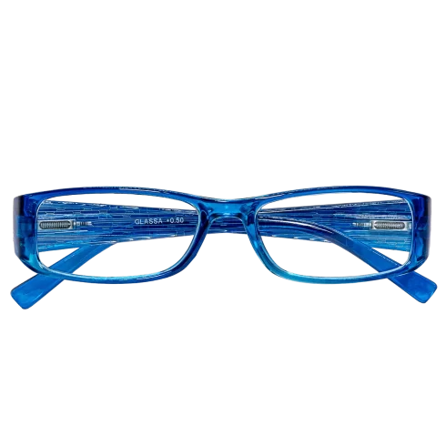 Tyto brýlové obroučky G138 modré jsou dostupné jak v plusových hodnotách (vhodné pro čtení) tak v minusových hodnotách (brýle do dálky). Skok po 0,50 dioptrii např. (-1,5 , -1,0 , … 0,50 , 1,00 , 1,50 , …..). Plastové obroučky s flexi stranicemi. Čočky jsou vyrobeny u plastu.