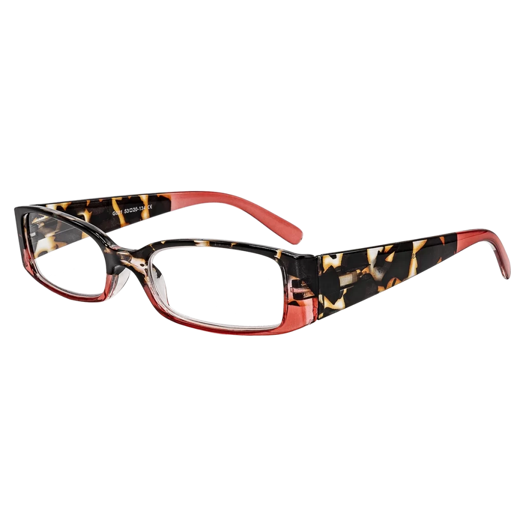 Tyto brýlové obroučky G021 červené jsou dostupné jak v plusových hodnotách (vhodné pro čtení) tak v minusových hodnotách (brýle do dálky). Skok po 0,50 dioptrii např. (-1,5 , -1,0 , … 0,50 , 1,00 , 1,50 , …..). Plastové obroučky s flexi stranicemi. Čočky jsou vyrobeny u plastu.