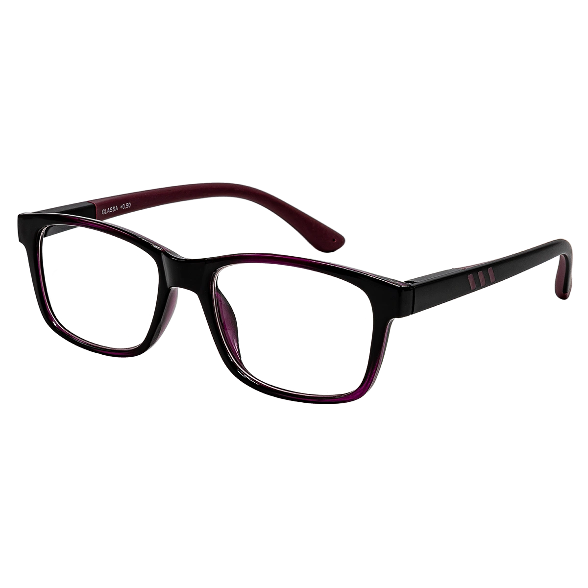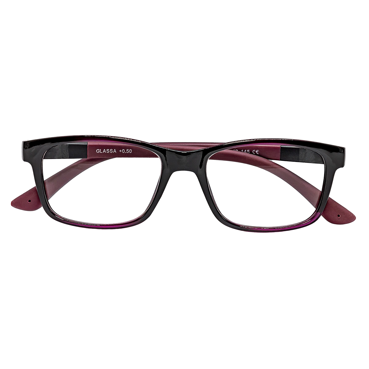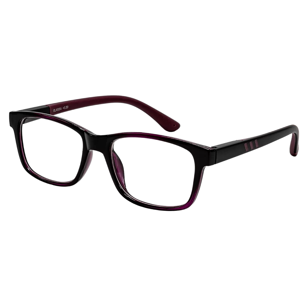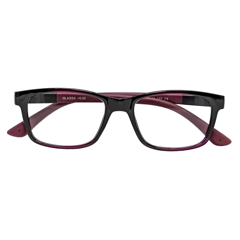 Tyto brýlové obroučky G140 černo fialové jsou dostupné jak v plusových hodnotách (vhodné pro čtení) tak v minusových hodnotách (brýle do dálky). Skok po 0,50 dioptrii např. (-1,5 , -1,0 , … 0,50 , 1,00 , 1,50 , …..). Plastové obroučky s flexi stranicemi. Čočky jsou vyrobeny u plastu.