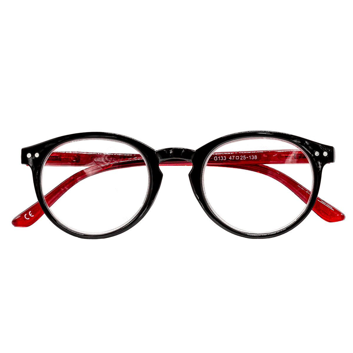 Celý popisObroučky G133 červené postranice černé se vzorem jsou dostupné jak v plusových hodnotách (vhodné pro čtení) tak v minusových hodnotách (brýle do dálky). Skok po 0,50 dioptrii např. (-1,5 , -1,0 , … 0,50 , 1,00 , 1,50 , …..). Plastové obroučky s flexi stranicemi. Čočky jsou vyrobeny u plastu.